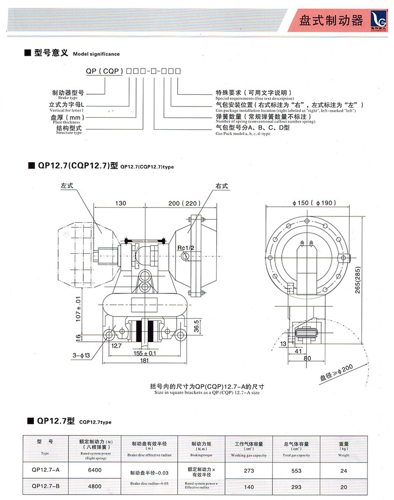 名稱(chēng):CQP系列鉗盤(pán)式制動(dòng)器